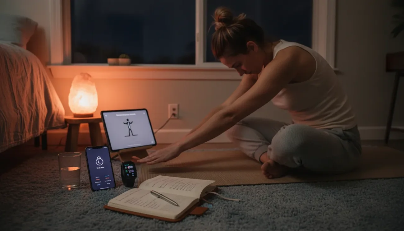 Gentle movement: Do a 10-15 minute stretch or mobility session, guided by an app or video. This helps your body shift from active to recovery mode.