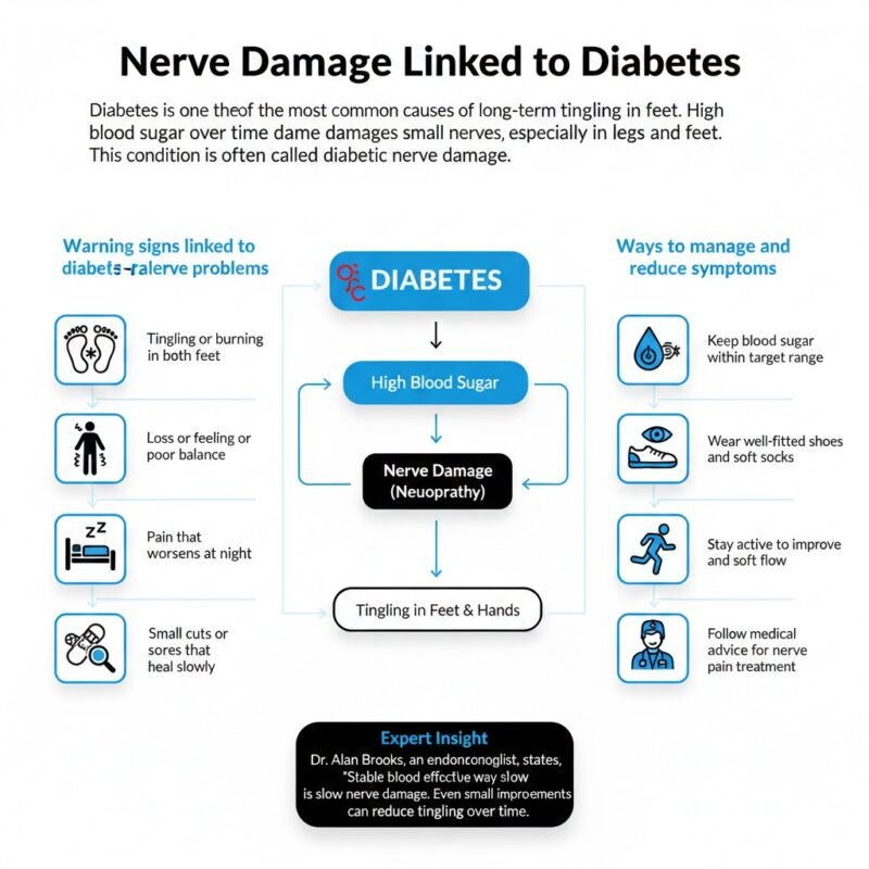 Dr. Alan Brooks, an endocrinologist, states, “Stable blood sugar is the most effective way to slow nerve damage. Even small improvements can reduce tingling over time.”